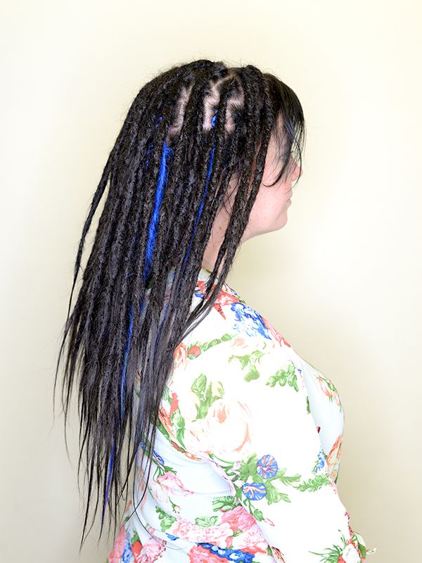 – Si vous avez du mal à rester assis(e) pendant de longues périodes, je peux également préparer les extensions avant votre rendez-vous. Cela permet de réduire de moitié le temps passé au salon. Si vous souhaitez uniquement les extensions de dreadlocks, vous pouvez aussi les commander et les recevoir chez vous.