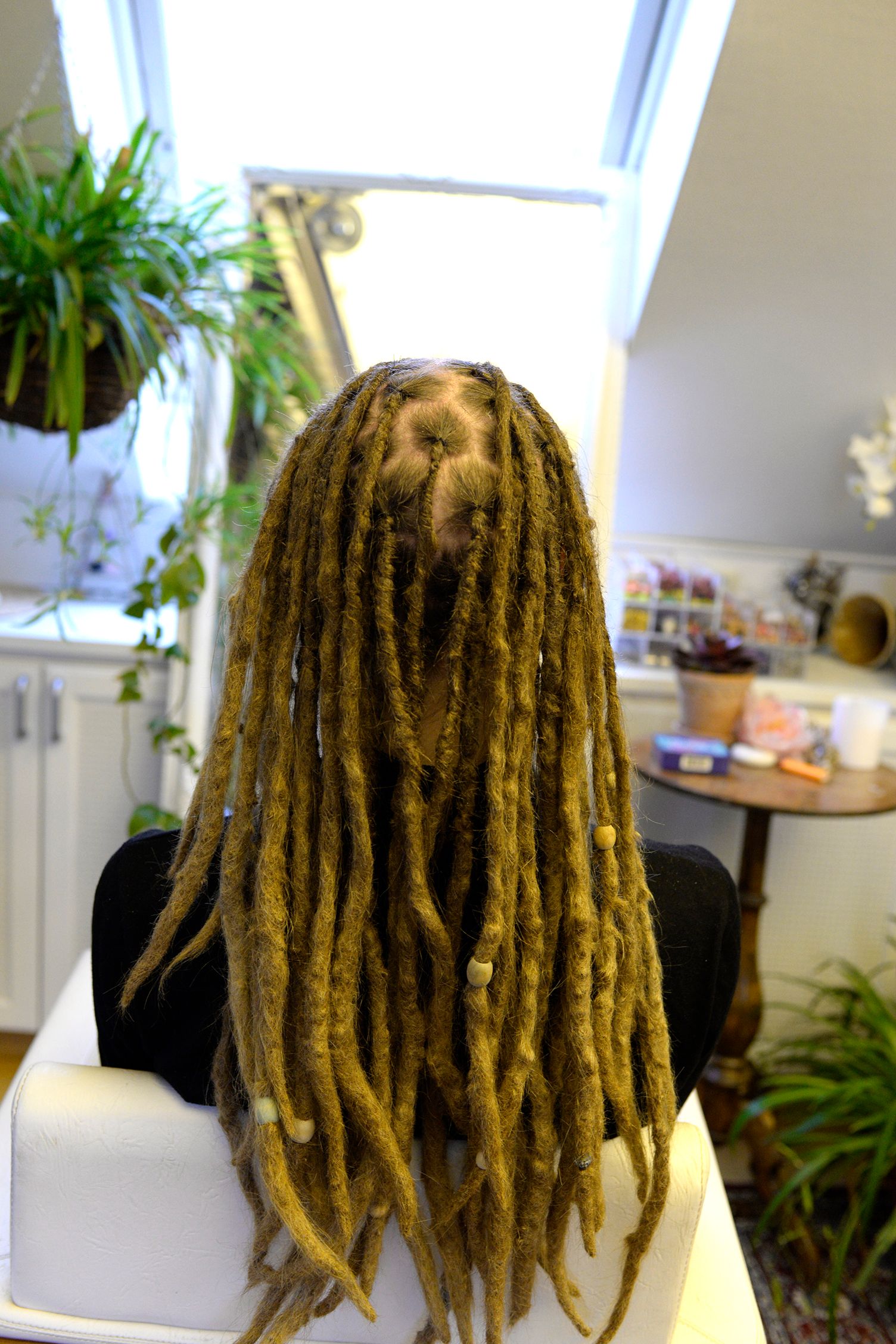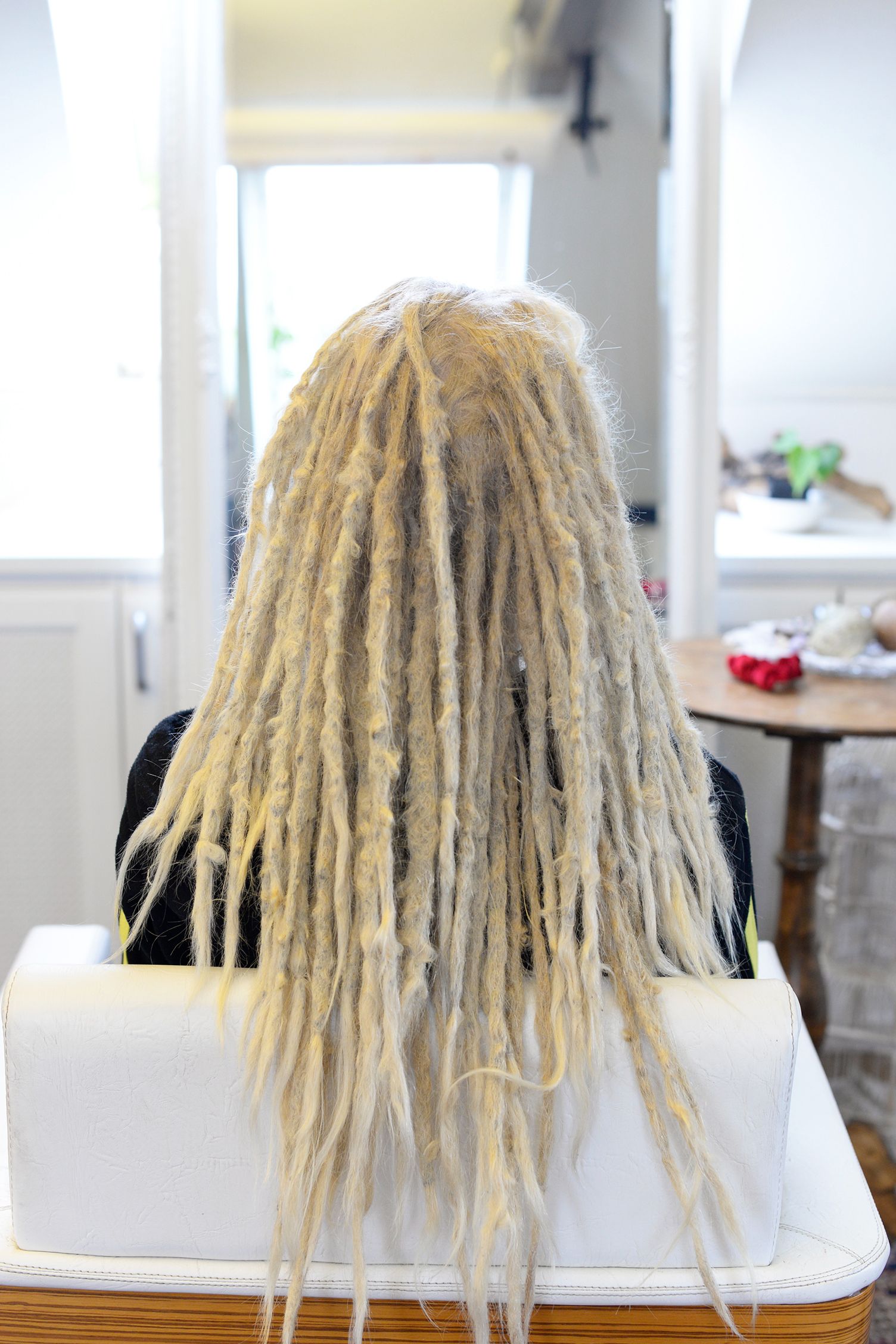 Pour l’entretien des dreadlocks, je facture un tarif horaire de 50 € par heure. En moyenne, l’entretien complet d’une tête de dreadlocks prend environ deux heures.